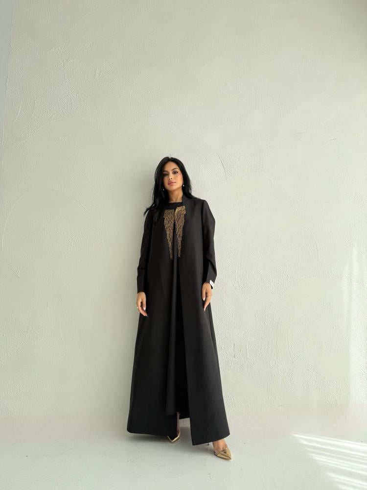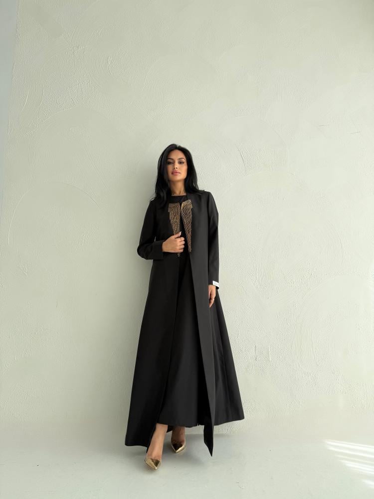 تميّزي بإطلالة راقية مع عبايتنا البليزر المصممة من أفخم أنواع الكريب الكوري. بتصميم مبطّن يمنحك راحة وأناقة، وتفاصيل “الشك " النحاسي