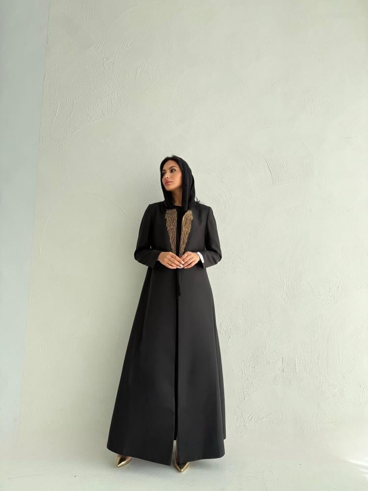 تأتي العباية مع طرحة بكامل الأناقة، بحافة من نفس قماش الكريب الكوري لتكامل مثالي.