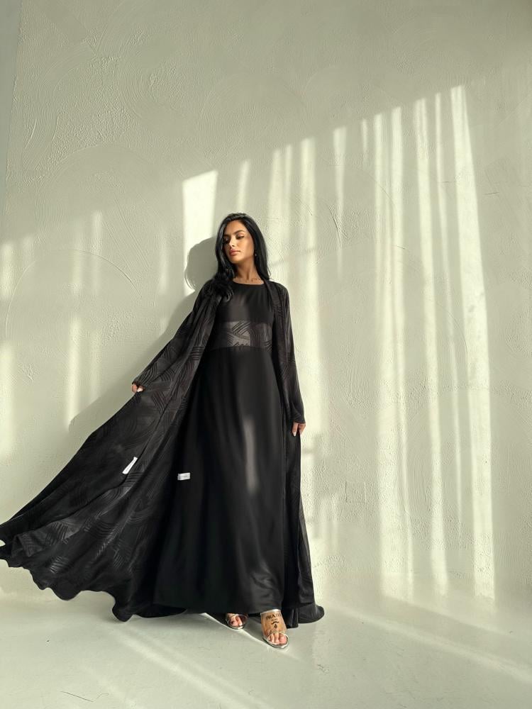 عباية باللون الأسود مع فستان – لمسة صيفية راقية